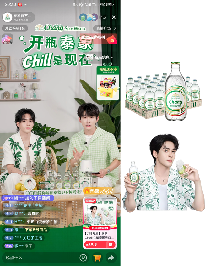 10月11日晚20:00-21:00开启明星大场,品川联动,直播间限定链接10分钟售罄,荣登抖音冲饮带货榜榜首,并持续霸榜1小时。