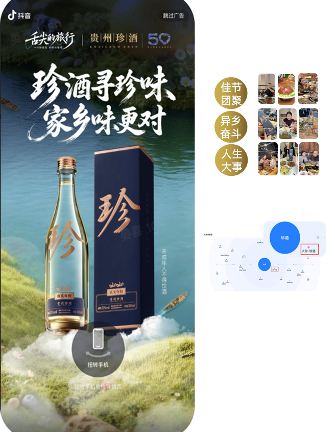 【项目背景】2025 年白酒行业面临存量竞争加剧、消费人群迭代、场景需求升级的多重挑战;作为酱香白酒领军品牌,贵州珍酒通过与巨量引擎《舌尖的旅行》 IP 合作。