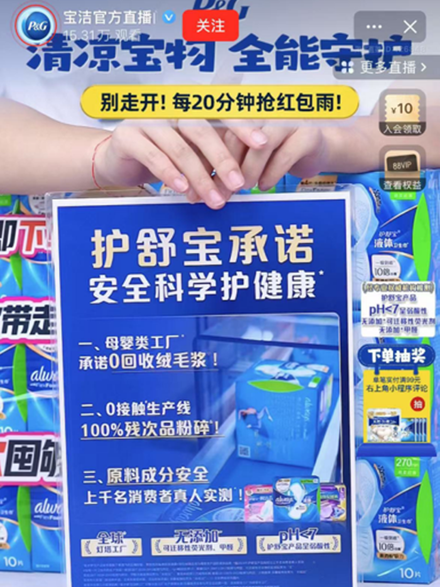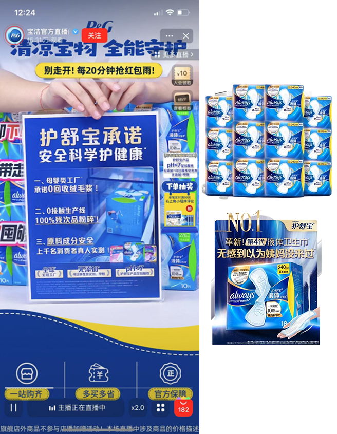 讲解用户关心的热点话题:精准洞察行业热点背后的消费者安全顾虑,围绕“卫生巾是否安全”等敏感关注点,从主播话术/直播间视觉/货品标题等多方面进行“安全”话题的强沟通,消除用户顾虑,实现从“产品卖点”到“用户关心”的转译